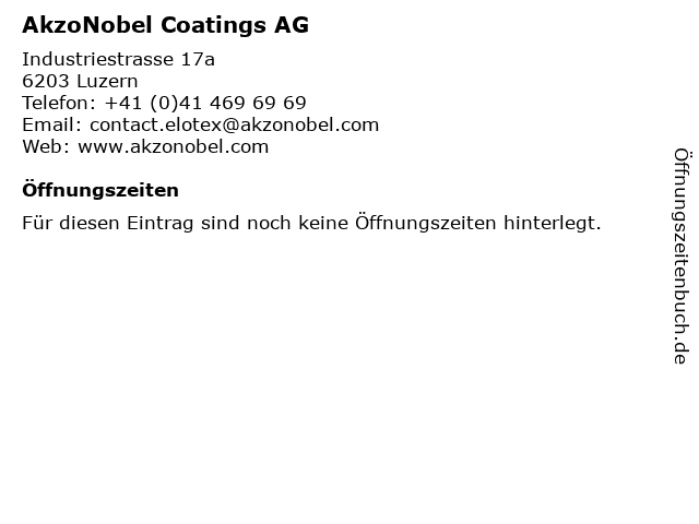 | Öffnungszeiten AkzoNobel Coatings AG in Luzern anzeigen | |