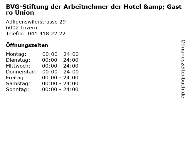 1 Altersgeldkasse der Hotel & Union c/o Hotel & Gastro Union (Entfernung: 0,00 km) Adligenswilerstrasse 29, 6002 Luzern 2 Zentralschweizer BVG- und Stiftungsaufsicht (ZBSA) - Büro (Entfernung: 1,45 km) Bundesplatz 14, 6015 Luzern 6 |