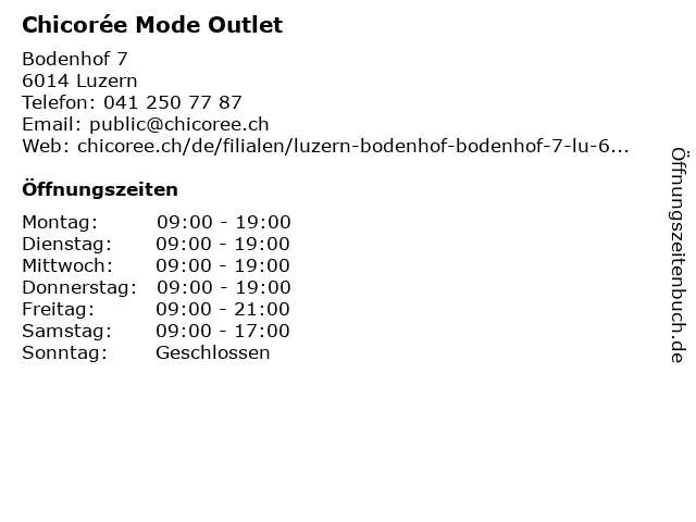 | Öffnungszeiten Chicorée Mode Outlet in Luzern anzeigen | |