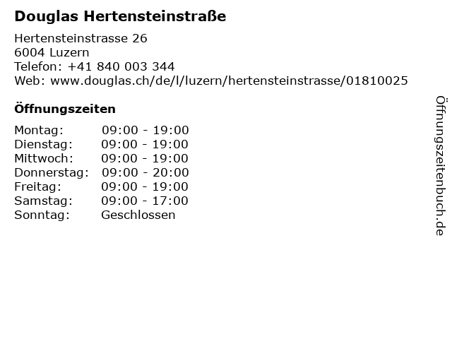| Öffnungszeiten Douglas Hertensteinstraße in Luzern anzeigen | |