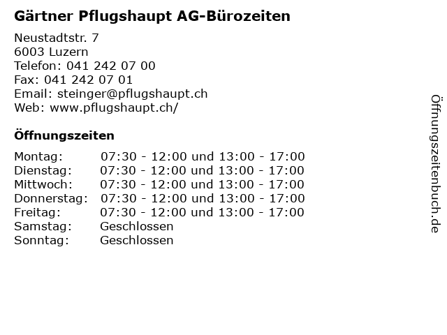 Branchen & Suchbegriffe zu Gärtner Pflugshaupt AG-Bürozeiten:bürozeiten, gärtner, pflugshaupt |