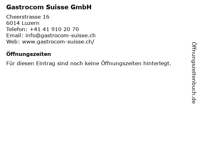 | Öffnungszeiten Gastrocom Suisse GmbH in Luzern anzeigen | |