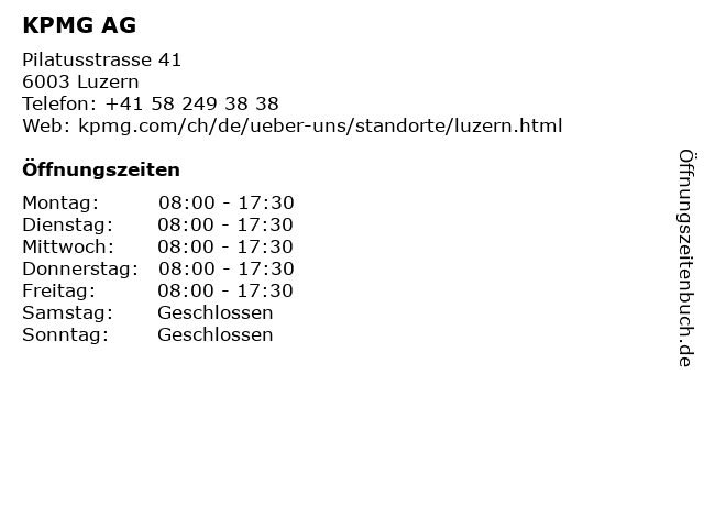 | Öffnungszeiten KPMG AG in Luzern anzeigen | |