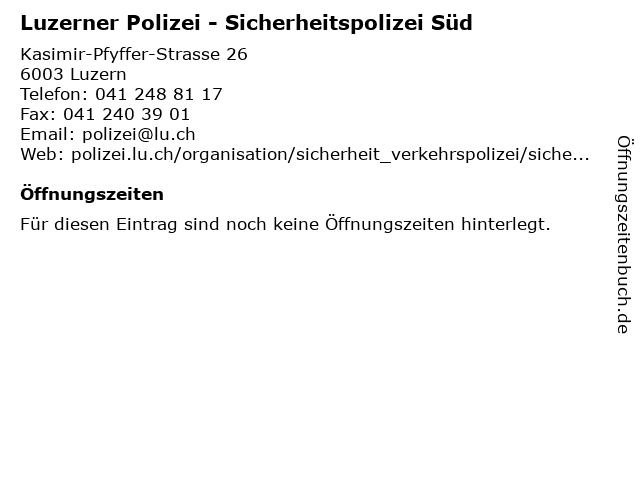 | Luzerner Polizei - Sicherheitspolizei Süd anrufen | |