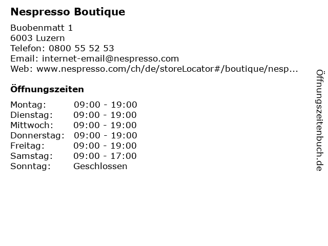 | Öffnungszeiten Nespresso Boutique in Luzern anzeigen | |