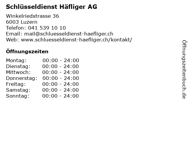 | Öffnungszeiten Schlüsseldienst Häfliger AG in Luzern anzeigen | |