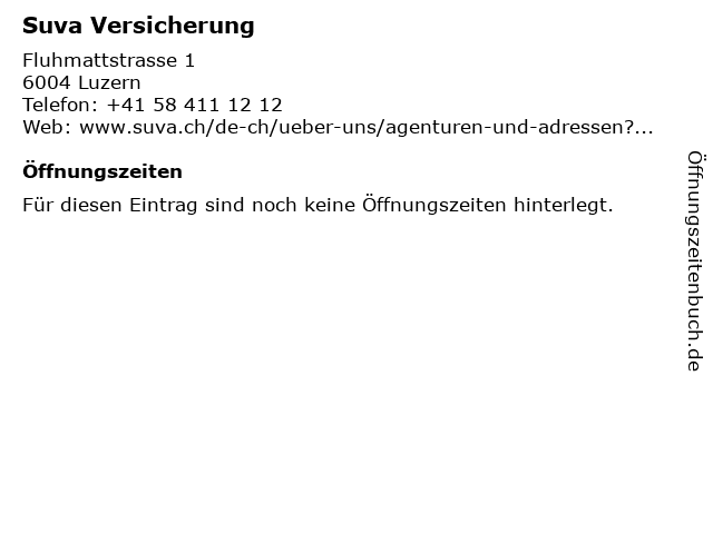 | Öffnungszeiten Suva Versicherung in Luzern anzeigen | |