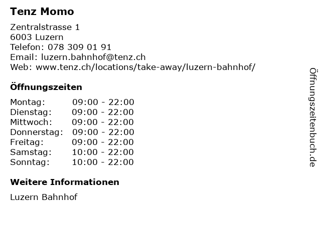 | Öffnungszeiten Tenz Momo in Luzern anzeigen | |