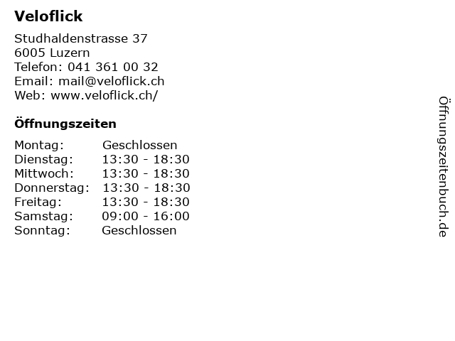 | Öffnungszeiten Veloflick in Luzern anzeigen | |