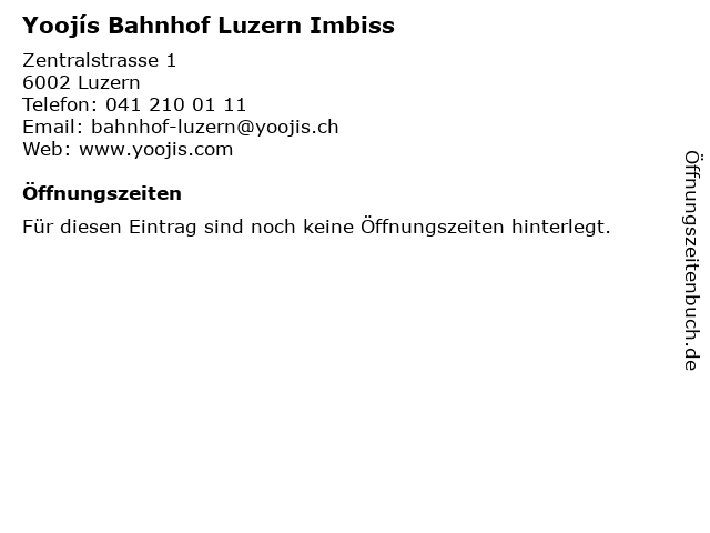 | Öffnungszeiten Yoojís Bahnhof Luzern Imbiss in Luzern anzeigen | |