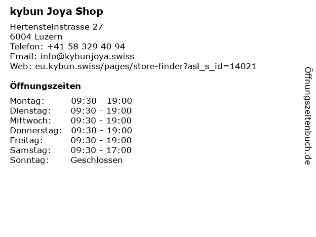 | Öffnungszeiten kybun Joya Shop in Luzern anzeigen | |