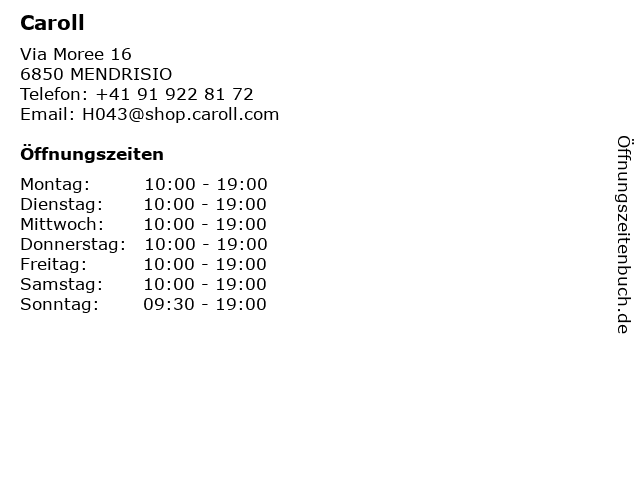 | Öffnungszeiten Caroll in MENDRISIO anzeigen | |