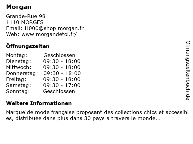 | Öffnungszeiten Morgan in MORGES anzeigen | |