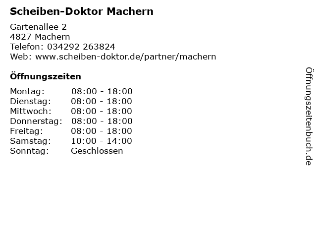 | Öffnungszeiten Scheiben-Doktor Machern in Machern anzeigen | |