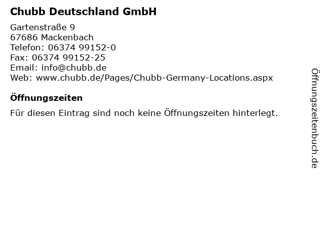 | Öffnungszeiten Chubb Deutschland GmbH in Mackenbach anzeigen | |