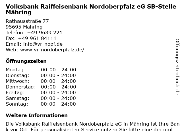 2 Volksbank Raiffeisenbank Nordoberpfalz eG - Völker Baustoff Zentrum (Entfernung: 5,59 km) Griesbach 48, 95695 Mähring 3 Volksbank Raiffeisenbank Nordoberpfalz eG Geschäftsstelle Neualbenreuth (Entfernung: 9,86 km) Raiffeisenstraße 22, 95698 Neualbenreuth 6 Raiffeisenbank im Stiftland eG - (SB-Filiale Tirschenreuth (Entfernung: 14,05 km) Maximilianplatz 21, 95643 Tirschenreuth |
