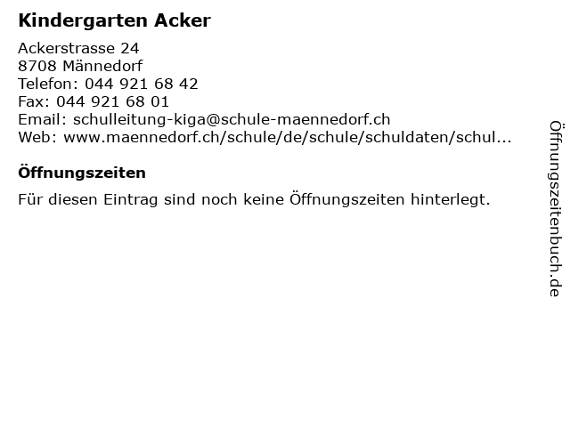 | Öffnungszeiten Kindergarten Acker in Männedorf anzeigen | |