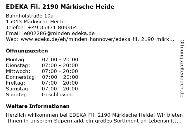 Branchen & Suchbegriffe zu EDEKA Fil. 2190 Märkische Heide:2190, edeka, edeka in der nähe, edeka markt, edeka öffnungszeiten, einkaufen, fil., heide, lebensmittel, lebensmittelgeschäft, lebensmittelhändler, märkische, supermarkt, supermarkt in der nähe |