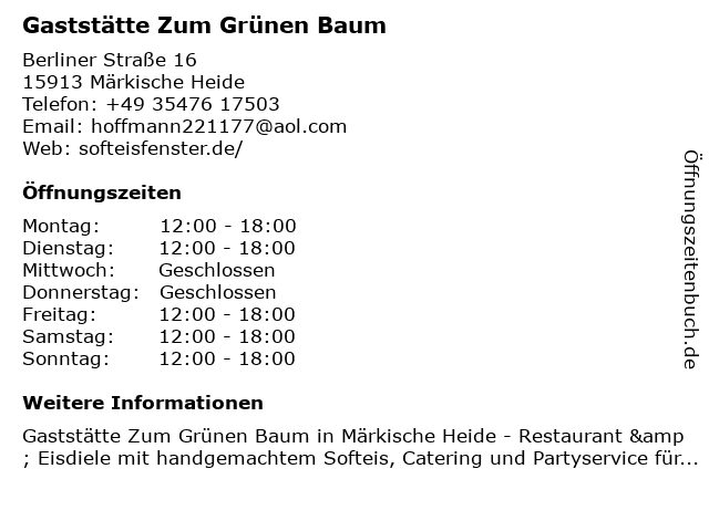 Branchen & Suchbegriffe zu Gaststätte Zum Grünen Baum:baum, catering, ddr softeis, eisdiele, eisdiele märkische heide, eisdielen, eismaik, familienfeier, familienfeier märkische heide, firmenfeier, firmenfeier märkische heide, gastronomie, gaststätte, gaststätte märkische heide, gaststätte zum grünen baum, grünen, handgemachtes softeis, hochzeitsfeier, partyservice, restaurant, restaurant märkische heide, softeis märkische heide, weihnachtsfeier, zum |