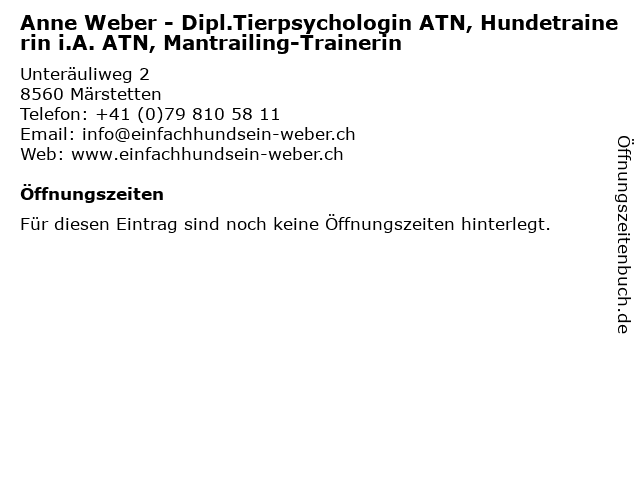 | Anne Weber - Dipl.Tierpsychologin ATN, Hundetrainerin i.A. ATN, Mantrailing-Trainerin anrufen | |