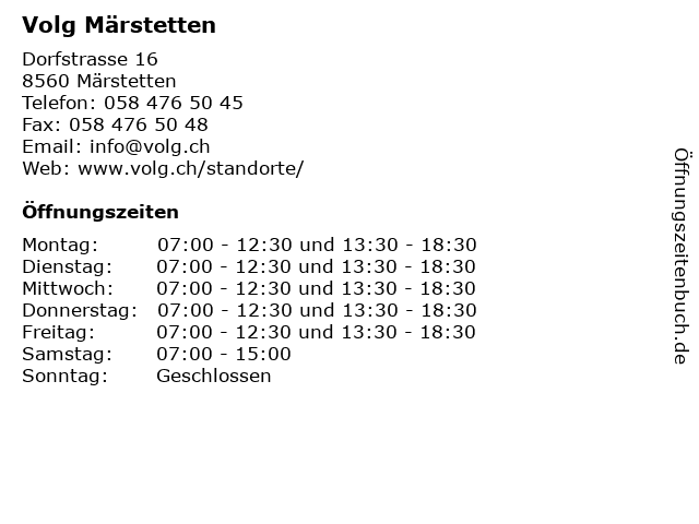 | Öffnungszeiten Volg Märstetten in Märstetten anzeigen | |