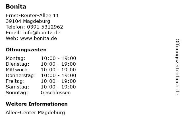 Öffnungszeiten Bonita