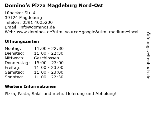 Branchen & Suchbegriffe zu Domino's Pizza Magdeburg Nord-Ost:domino's, nord, ost, pizza |