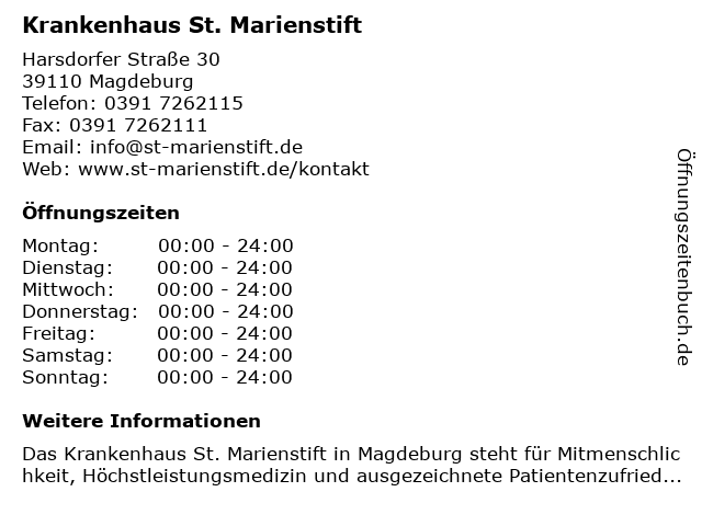 3 Krankenhaus St. Marienstift - Chirurgie (Allgemeine Chirurgische Sprechstunde, Kinderchirurgie, Wiedervorstellungen) (Entfernung: 0,02 km) Harsdorfer Straße 30, 39110 Magdeburg 4 Krankenhaus St. Marienstift - Chirurgie (Onkologische- und Visceralchirurgie, Proktologie, Beckenboden-Zentrum) (Entfernung: 0,02 km) Harsdorfer Straße 30, 39110 Magdeburg 5 Krankenhaus St. Marienstift - Chirurgie (Sprechstunde für Privatpatienten ) (Entfernung: 0,02 km) Harsdorfer Straße 30, 39110 Magdeburg 6 Krankenhaus St. Marienstift - Chirurgie (Allgemeine und Visceralchirurgische Sprechstunde, Wiedervorstellungen) (Entfernung: 0,02 km) Harsdorfer Straße 30, 39110 Magdeburg |