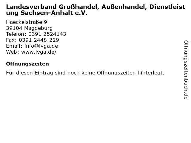 | Landesverband Großhandel, Außenhandel, Dienstleistung Sachsen-Anhalt e.V. anrufen | |