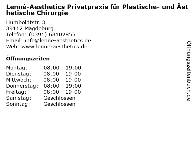 1 Dr. med. Bchar Ibrahim Facharzt für Plastische und Ästhetische Chirurgie (Entfernung: 0,00 km) Humboldtstr. 3, 39112 Magdeburg 2 Lamare Praxis Für Plastische Ästhetische Chirurgie (Entfernung: 0,78 km) Hegelstr. 16, 39104 Magdeburg 4 Uniklinikum Magdeburg-Plastische, Ästhetische und Handchirurgie-Plastische-/Handchirurgie/ BG-Sprec (Entfernung: 1,48 km) Leipziger Str. 44, 39130 Magdeburg 5 Uniklinikum Magdeburg-Plastische, Ästhetische und Handchirurgie-Mammachirurgie (Entfernung: 1,48 km) Leipziger Str. 44, 39130 Magdeburg 6 Ali Bahsoun - Facharzt für Plastische und Ästhetische Chirurgie (Entfernung: 1,96 km) Breiter Weg 19d, 39104 Magdeburg |