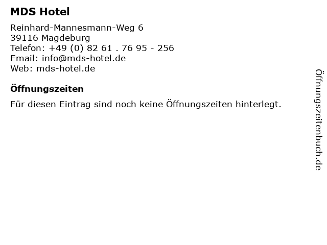 | Öffnungszeiten MDS Hotel in Magdeburg anzeigen | |