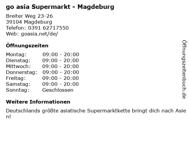 Branchen & Suchbegriffe zu go asia Supermarkt - Magdeburg:asia, go, supermarkt, supermärkte |