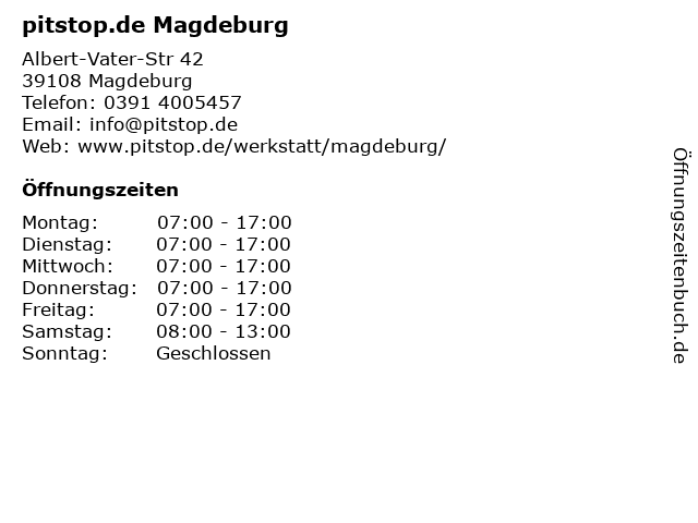 | Öffnungszeiten pitstop.de Magdeburg in Magdeburg anzeigen | |