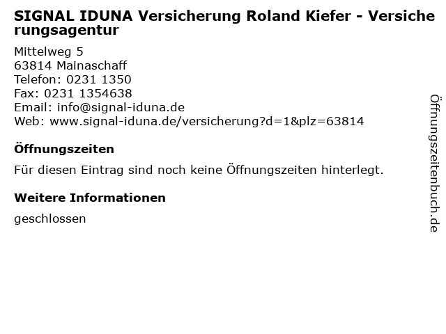 | SIGNAL IDUNA Versicherung Roland Kiefer - Versicherungsagentur anrufen | |