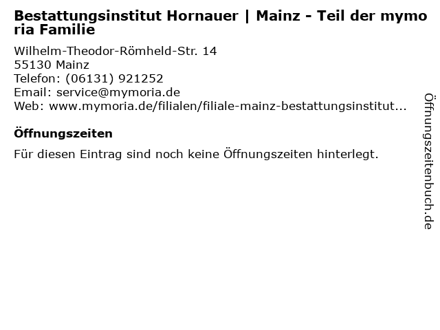 | Bestattungsinstitut Hornauer | Mainz - Teil der mymoria Familie anrufen | |