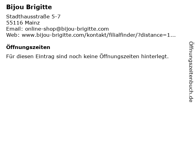| Öffnungszeiten Bijou Brigitte in Mainz anzeigen | |