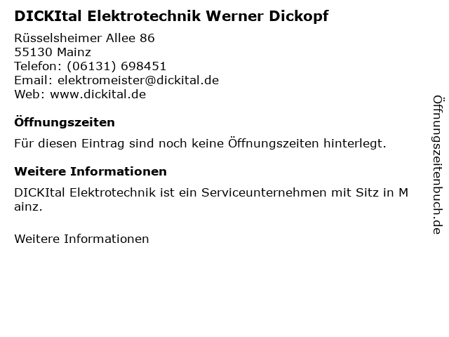 | DICKItal Elektrotechnik Werner Dickopf anrufen | |