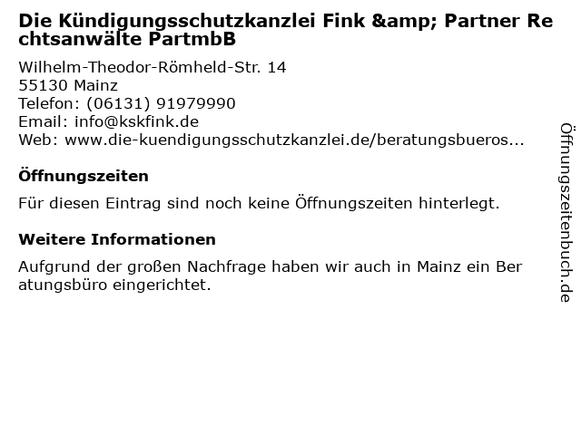 | Die Kündigungsschutzkanzlei Fink & Partner Rechtsanwälte PartmbB anrufen | |