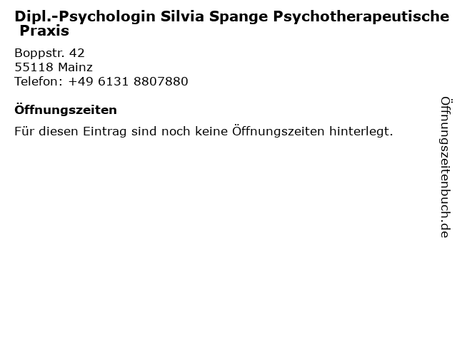 | Dipl.-Psychologin Silvia Spange Psychotherapeutische Praxis anrufen | |