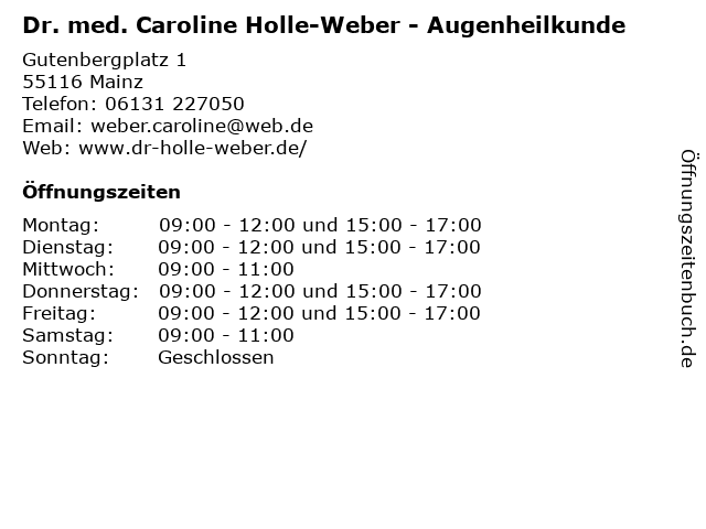 Branchen & Suchbegriffe zu Dr. med. Caroline Holle-Weber - Augenheilkunde:augenheilkunde, caroline, dr., holle, med., sprechzeiten, versorgung, weber, ärzte |