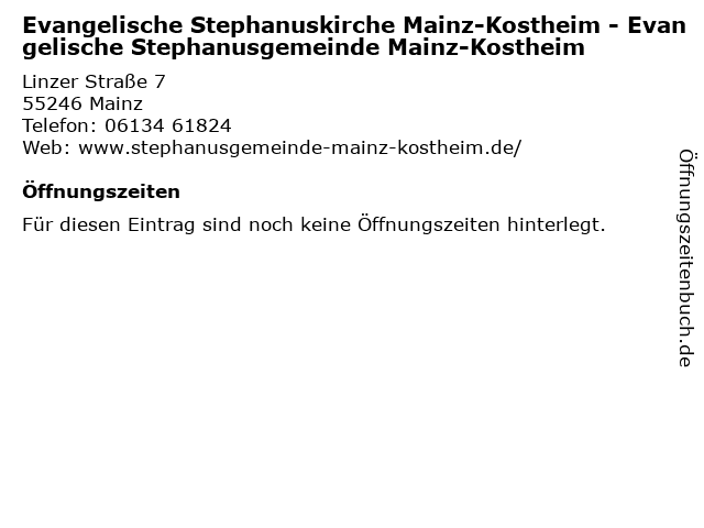 | Evangelische Stephanuskirche Mainz-Kostheim - Evangelische Stephanusgemeinde Mainz-Kostheim anrufen | |