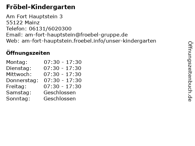 | Öffnungszeiten Fröbel-Kindergarten in Mainz anzeigen | |