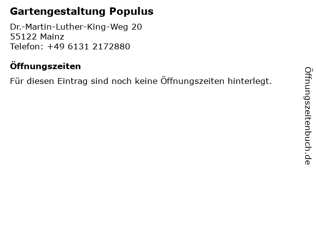 | Öffnungszeiten Gartengestaltung Populus in Mainz anzeigen | |