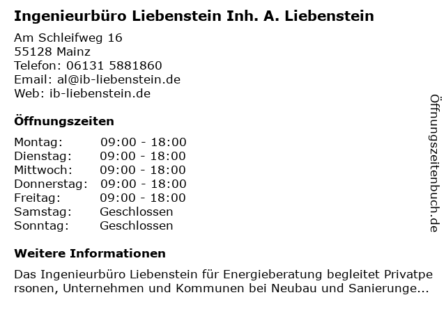 Branchen & Suchbegriffe zu Ingenieurbüro Liebenstein Inh. A. Liebenstein:a., ingenieurbüro |