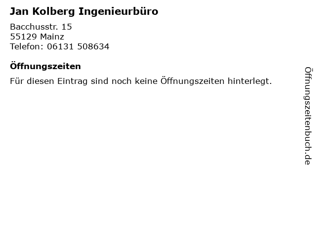 | Öffnungszeiten Jan Kolberg Ingenieurbüro in Mainz anzeigen | |
