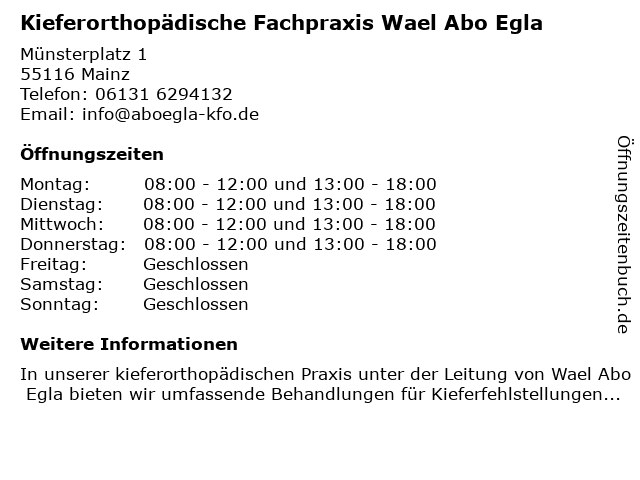 Branchen & Suchbegriffe zu Kieferorthopädische Fachpraxis Wael Abo Egla:abo, egla, fachpraxis, kieferorthopädische, wael |