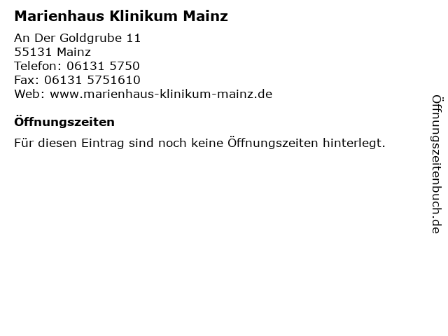 | Öffnungszeiten Marienhaus Klinikum Mainz in Mainz anzeigen | |
