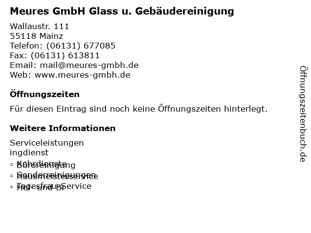 Öffnungszeiten Meures GmbH Glass u. Gebäudereinigung in Mainz anzeigen