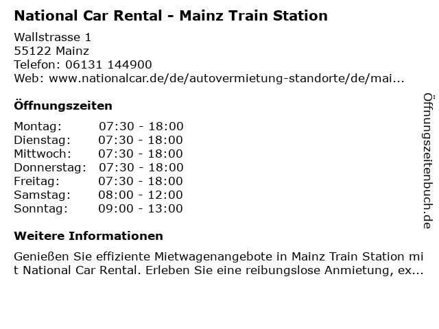 Branchen & Suchbegriffe zu National Car Rental - Mainz Train Station:car, national, rental, station, train |