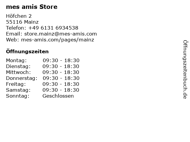 | Öffnungszeiten mes amis Store in Mainz anzeigen | |